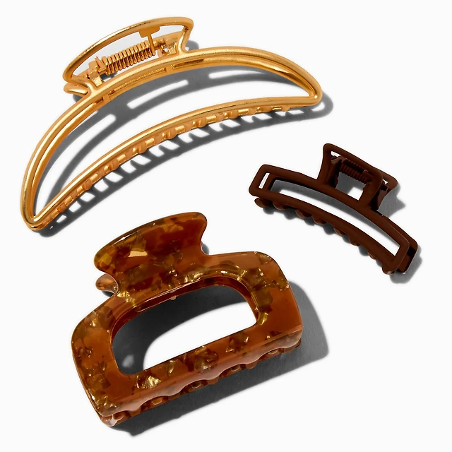 Mixed Gold-tone Tortoiseshell Hair Claws - 3 Pack
