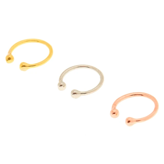 Mixed Metal Faux Hoop Nose Rings - 3 Pack
