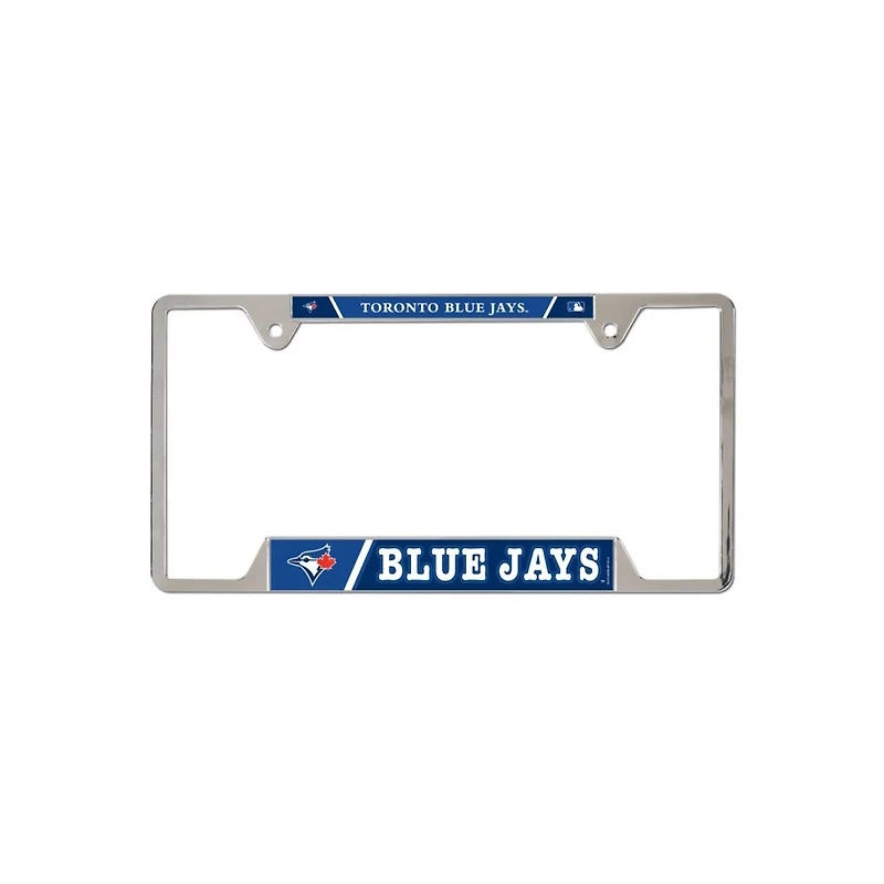 Metal License Plate Frame is decorated with two full color inserts. The cast zinc frame is chrome plated zinc alloy with two mounting holes on the top of the frame. Standard 6"x12" size. Manufactured by Wincraft and officially licensed by the MLB.