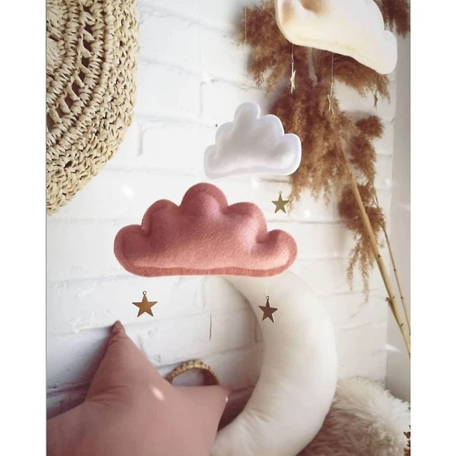 Mobile, nuage et étoile - Pêche, Blanc et Rose