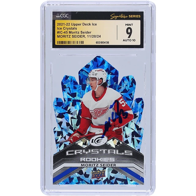 Moritz Seider Detroit Red Wings Carte recrue 9/10 authentifiée 2021-22 Upper Deck Ice Crystals #IC-45 dédicacée par les fanatiques de CGC
