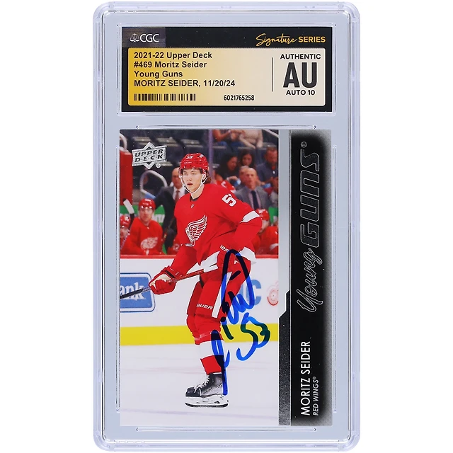 Moritz Seider Detroit Red Wings Carte recrue autographiée 2021-22 Upper Deck Series 2 Young Guns #469 CGC Fanatics Witnessed Authenticated Auto 10 Rookie