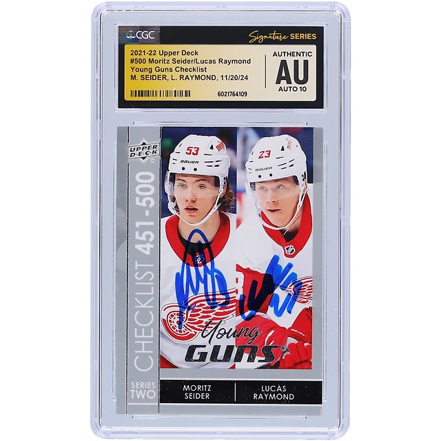 Moritz Seider et Lucas Raymond Detroit Red Wings 2021-22 Upper Deck Series 2 Young Guns Checklist #500 CGC Fanatics a été témoin d'une carte recrue authentifiée Auto 10