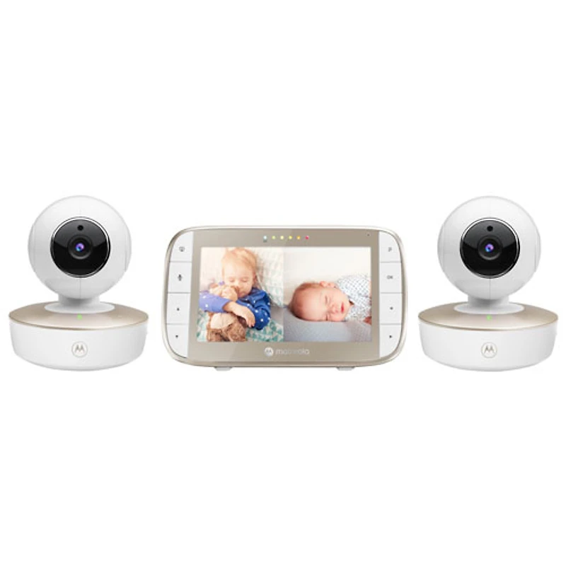 Motorola 5" Video Baby Monitor with Remote Pan, Night Vision and Zoom/Pan/Tilt (VM50G-2) - Double Camera - White/Gold