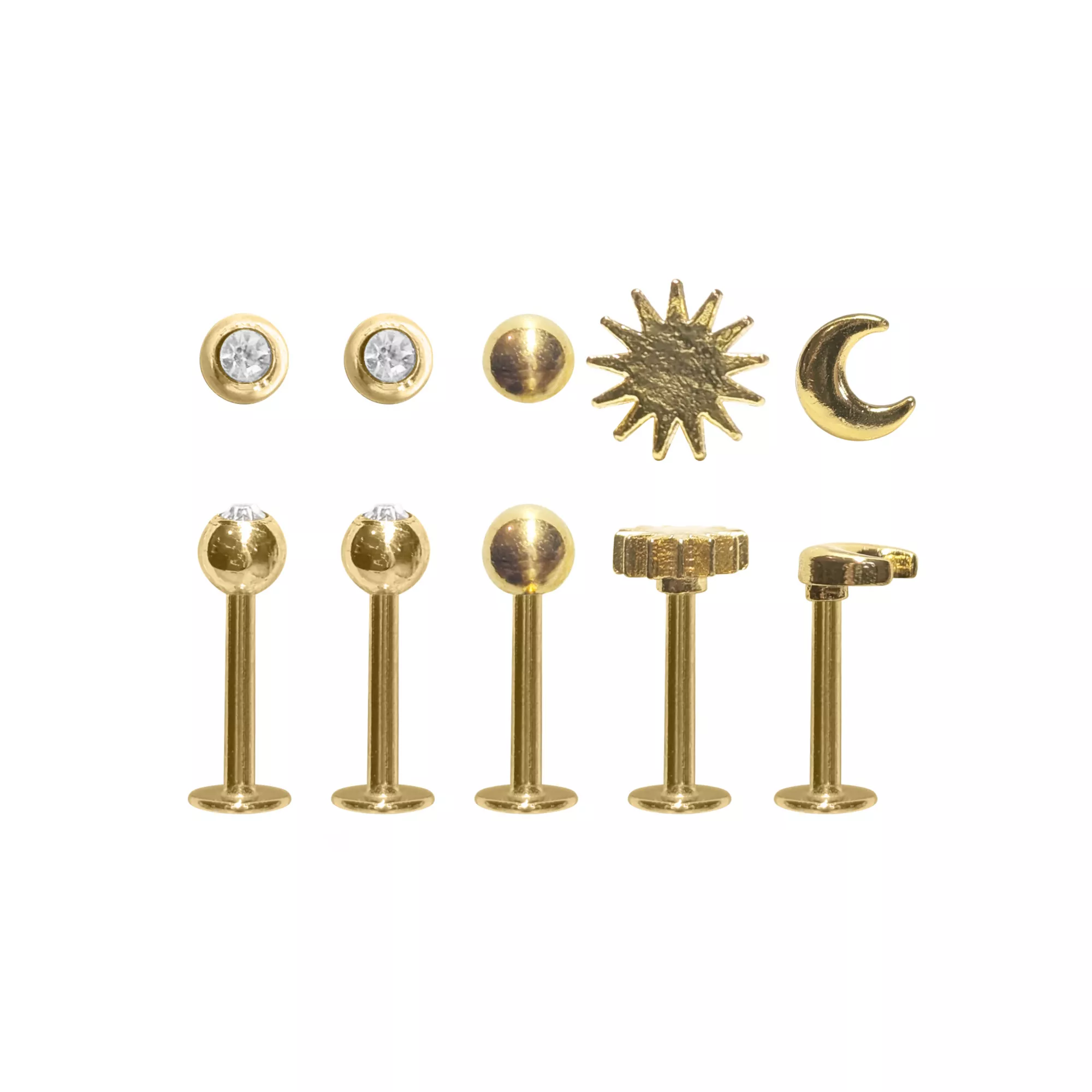 Shop Spencer’s for the perfect Multi-Pack Clear CZ Celestial Gold-Tone Labret Lip Rings 5 Pack - 16 Gauge. Make us your destination for all things Body Jewelry. **SHOP NOW & SAVE**