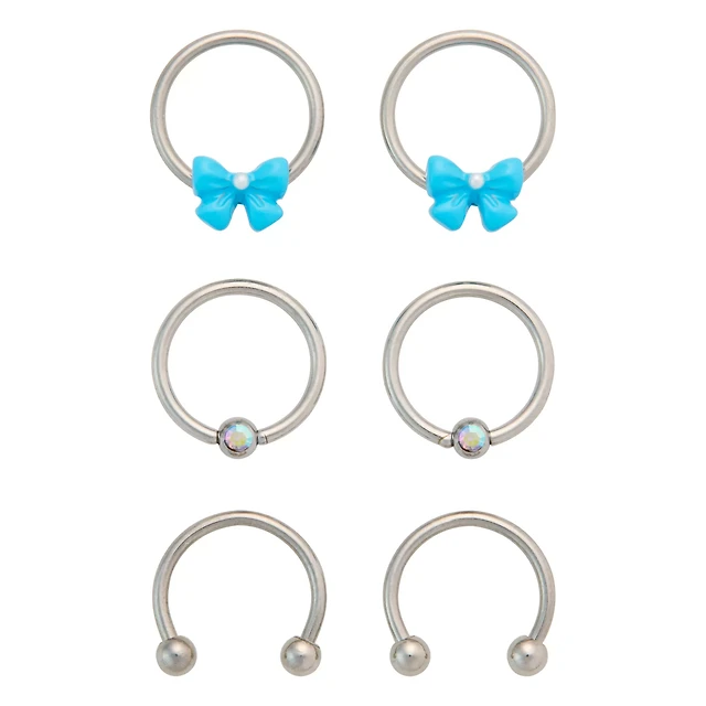 Multi-Pack Silvertone Bow Horseshoe and Captive Rings 16 Gauge - 3 Pair