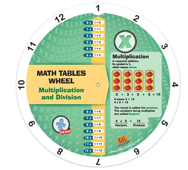 Finally the ideal tool to easily master and remember your multiplication and division tables! Just spin the wheel to choose a table and learn it while having fun! On the front: multiplication tables from 0 to 12; On the back: division tables from 0 to 12. Offered in a durable protective cover which allows insertion into a school bag.
