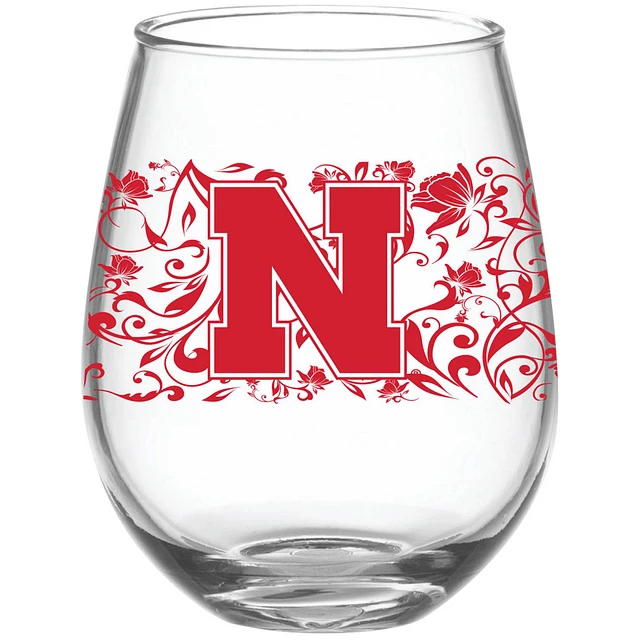 Nebraska Huskers 15oz. Floral Logo Stemless Wine Glass