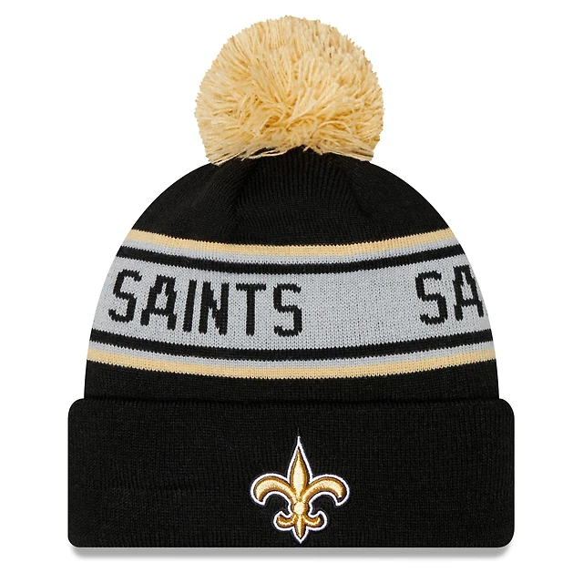 New Era New Orleans Saints Repeat noir pour homme - Bonnet en tricot à revers avec pompon
