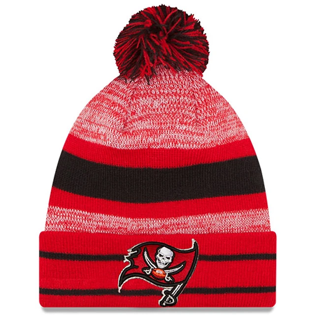 New Era Red Tampa Bay Buccaneers Stripe pour homme - Bonnet en tricot à revers avec pompon