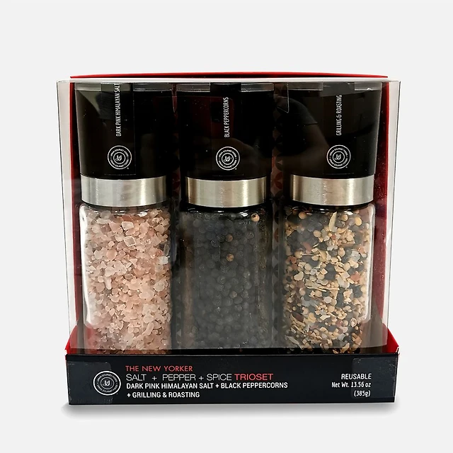 The New Yorker Dark Pink Himalayan Salt and Black Peppercorn Set with Caddy