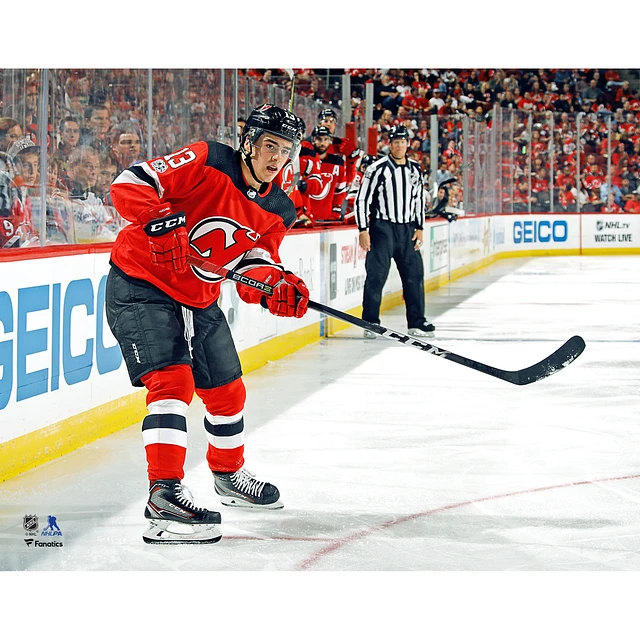 Nico Hischier New Jersey Devils Unsigned Red NHL Debut Photograph