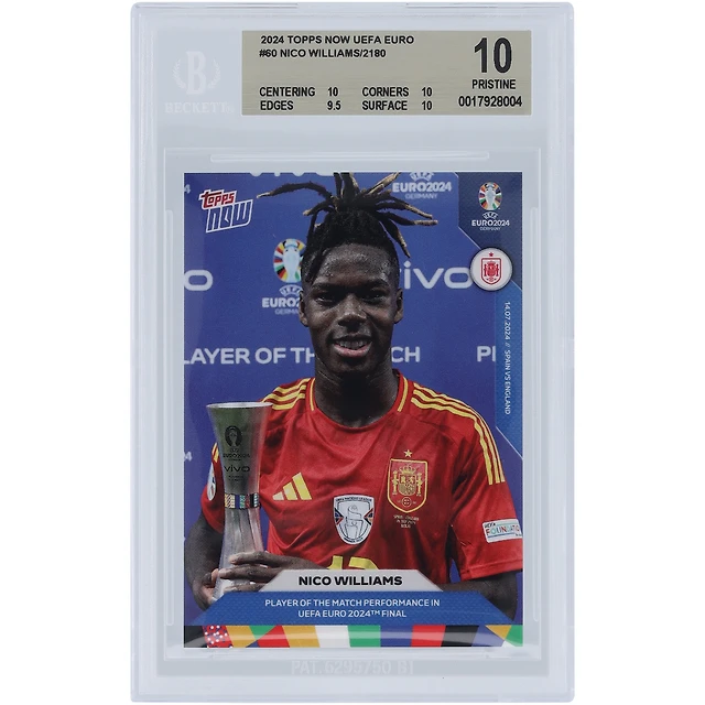 Nico Williams Équipe nationale d'Espagne 2024 Topps maintenant Joueur du match UEFA Euro 2024 14.07.24 #60 BGS Carte authentifiée 10 - Sous-grades 10,10,9.5,10