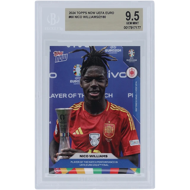 Nico Williams Équipe nationale d'Espagne 2024 Topps maintenant Joueur du match UEFA Euro 2024 14.07.24 #60 BGS Carte authentifiée 9.5