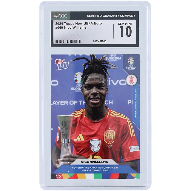 Nico Williams, joueur de l'équipe nationale espagnole 2024, est désormais élu Joueur du match de l'UEFA Euro 2024 pour sa performance lors de la finale de l'UEFA Euro 2024 #60 CGC Authenticated 10 Card