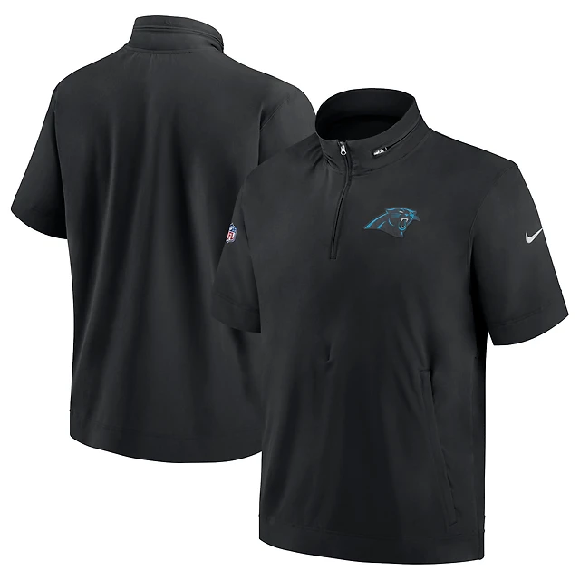 Nike Black Carolina Panthers Sideline Coach Veste à capuche et fermeture éclair quart de manches pour homme