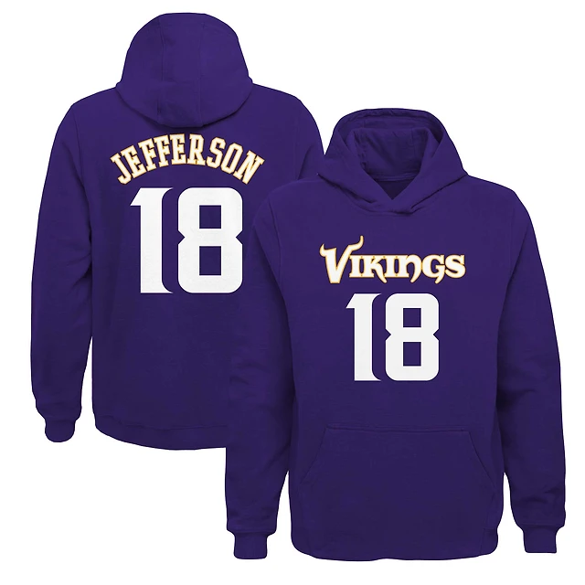 Nom et numéro du joueur principal Justin Jefferson Purple Minnesota Vikings pour jeunes Sweat à capuche épais