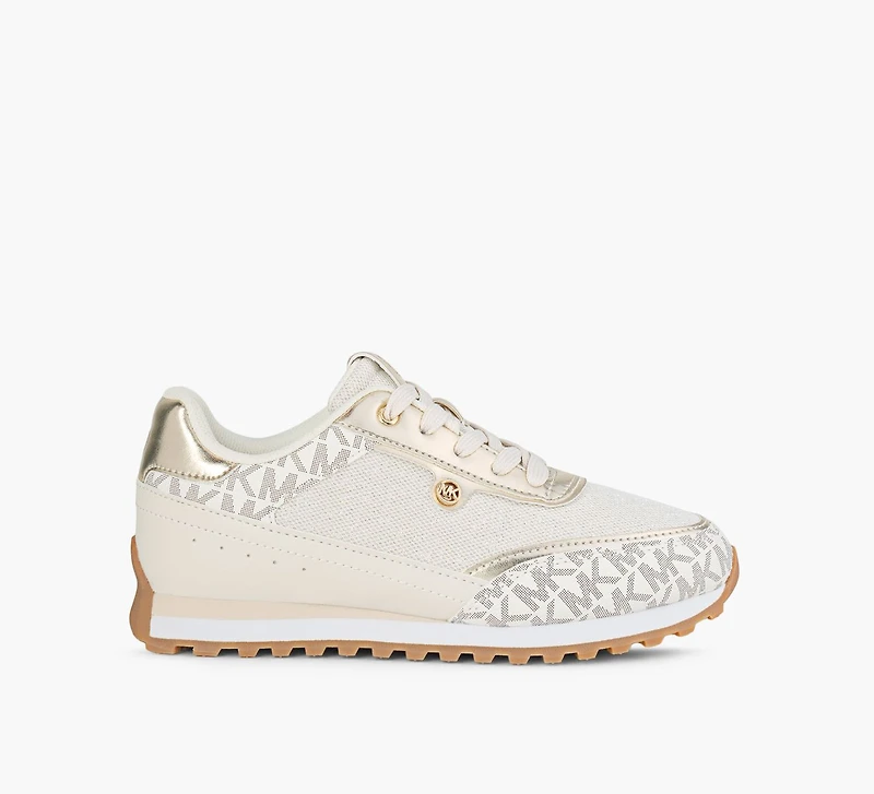 Michael Kors Nova trainer blends vintage‑inspired design with modern comfort. Crafted from high-quality materials, this lace‑up profile sits on a serrated rubber sole that supports all‑day wear. A mixed‑material upper adds depth and dimension, creating a versatile look built for everyday movement.