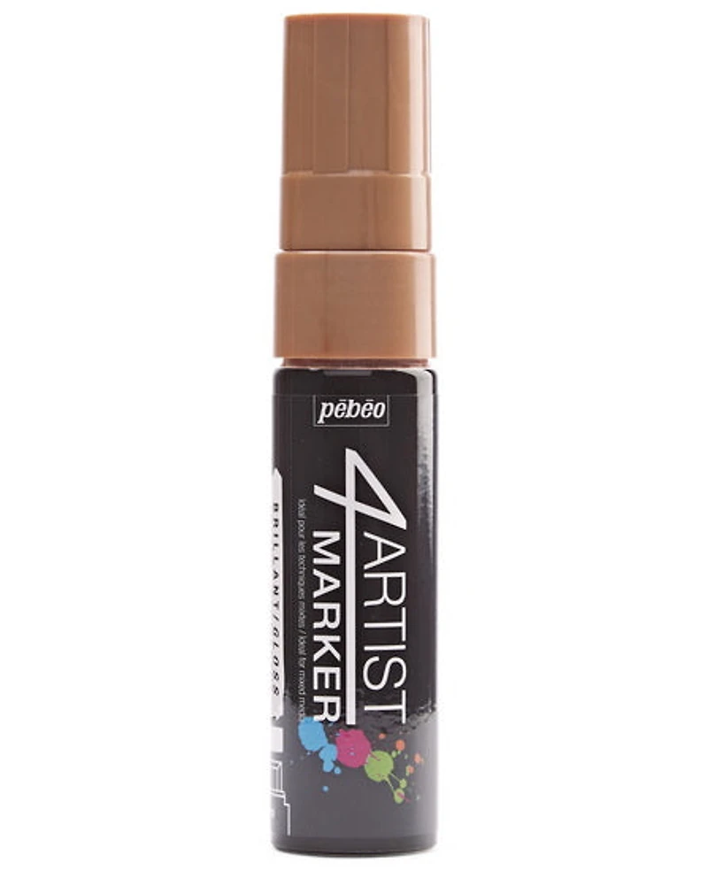 The 4Artist by Pébéo is an oil-based marker with a round tip. It produces an opaque, glossy and very lightfast finish. It allows precise drawing on most surfaces: canvas, paper, cardboard, wood, metal, plastic, glass, ceramic, porcelain, plaster, mineral materials, etc. Ideal for mixed media techniques, the 4Artist Marker can be used with fine arts and graphic arts paints (oil, acrylic, ink, etc.), or Pébéo's specialised paints such as Ceramic, Vitrail, Gédéo resins and Prism and Moon effect paints. We recommend applying a coat of Bindex or 4Artist varnish to the paint before applying the marker.To achieve splatter or drip effects, the wick should be "over-soaked" with paint and then shaken. These effects are best achieved with the 8 mm and 15 mm wicks. After using the marker for these effects, wipe the wick holder clean and regulate the paint flow.An excellent creative tool for professionals, artisans, students and beginner or advanced hobbyists!Note: Results will be less glossy on porous surfaces. To avoid loss of shine on these surfaces, we recommend applying a coat of Bindex or water-based varnish. The 4Artist Marker must be primed before first use. To do this, shake the marker firmly with the cap on. Then, on a sheet of paper, press the tip several times to soak the paper with paint.