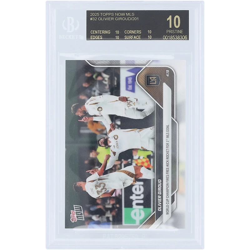Olivier Giroud LAFC 2025 Topps Now MLS World Cup Champion Fires Free Kick Rocket For 1st MLS Goal Black Label #32 BGS Authenticated 10 Card - 10,10,10,10 Subgrades