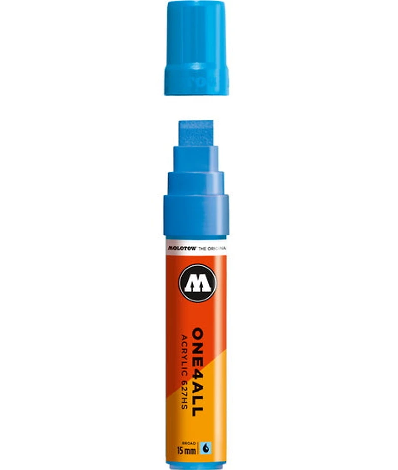 Molotow One4All markers are engineered and manufactured in Germany. Their high-quality, acrylic-based ink is permanent, UV resistant, quick-drying and non-toxic. It can be diluted with water or acetone, and will dry to an opaque, semi-gloss finish on nearly any porous or non-porous surface. They feature a patented capillary system and a Flowmaster valve, which offers a consistent paint flow to the tip of the marker. Suitable for both indoor and outdoor use. Use them with other Molotow spray paints and markers. Each marker can each be refilled at least 50 times using Molotow One4All Paint Refills, which can be mixed to create the colour of your choice. Tip: The numbers on the side of each marker (e.g. 127, 327, 427, 627) denote the size of the barrel, and thus the amount of paint the marker will hold. The Molotow One4All range is adaptable and environmentally friendly, as all markers are reusable and both the markers and the spray paints use the smallest amount of solvents possible, relying on an acrylic paint which is 85% water. The packaging is environmentally friendly and the manufacturer has a social responsibility program.