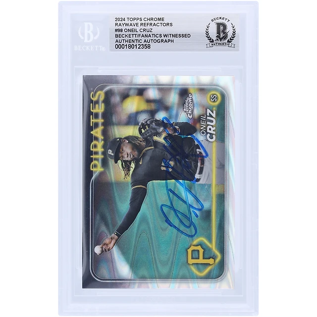 Oneil Cruz Pittsburgh Pirates Autographié 2024 Topps Chrome Raywave Refractor #98 Beckett Fanatics Witnessed Authenticated Card