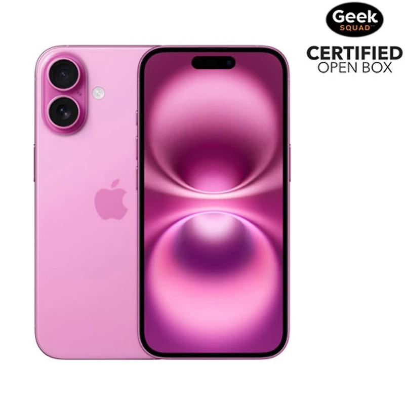 This is a Geek Squad Certified Open Box Product. See below for more information. Super fast. Super smart. Apple iPhone 16 is built for Apple Intelligence (Apple Intelligence coming December 2024). Featuring Camera Control. 48MP Fusion camera. Five vibrant colours. And A18 chip.