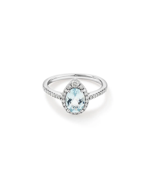 Oval Cut Blue Aquamarine Gemstone and 0.29 Carat TW Diamond Halo Ring in 10kt White Gold