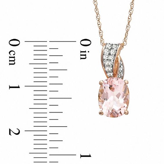 Oval Morganite and Lab-Created White Sapphire Ribbon Pendant in 10K Rose Gold