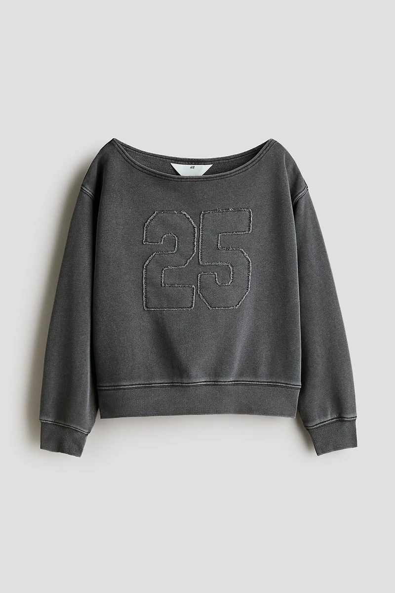 Oversized off-the-shoulder sweatshirt in lightweight fabric with a motif at front. Dropped shoulders, long sleeves, and ribbing at cuffs and hem.