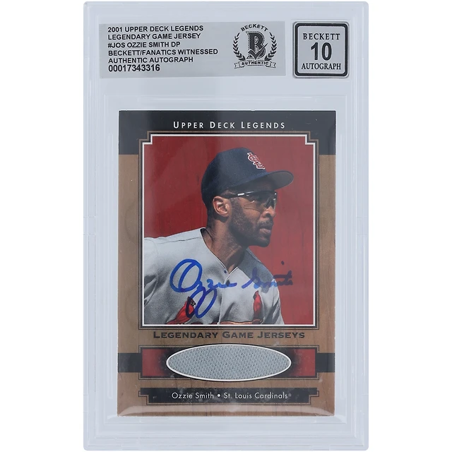 Ozzie Smith St. Louis Cardinals Autographed 2001 Upper Deck Legends Legendary Game Jersey Relic #J-OS Beckett Fanatics Witnessed Authenticated 10 Card