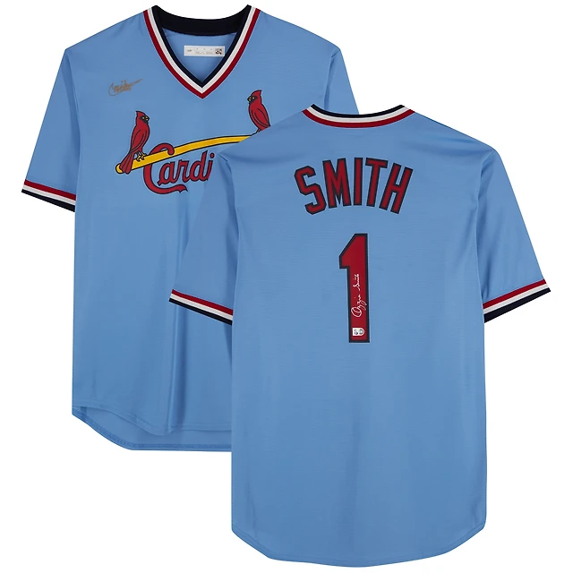 Ozzie Smith St. Louis Cardinals Autographed Light Blue Nike Cooperstown Collection Replica Jersey
