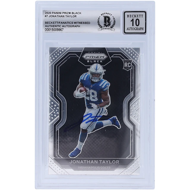 Panini America Jonathan Taylor Indianapolis Colts Carte de recrue autographiée 2020 Panini Chronicles Prizm Black #PB-7 Beckett Fanatics Witnessed Authenticated 10 Rookie