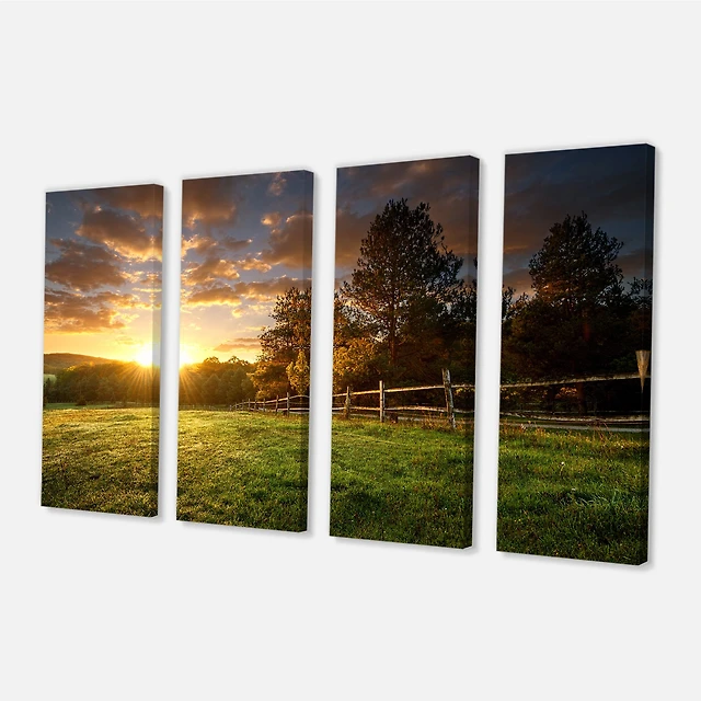 Panneaux de toile imprimée « Fenced Ranch at Sunrise »