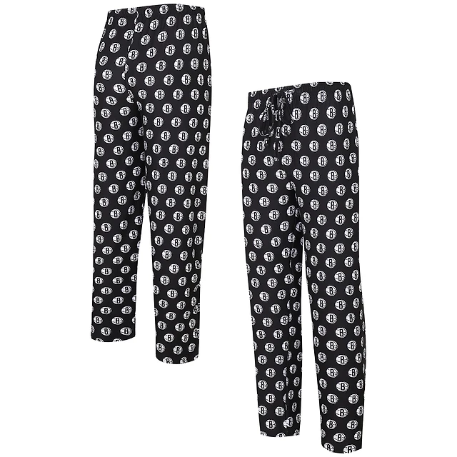 Pantalon de nuit Concepts Sport noir Brooklyn Nets avec logo imprimé sur toute la surface pour hommes
