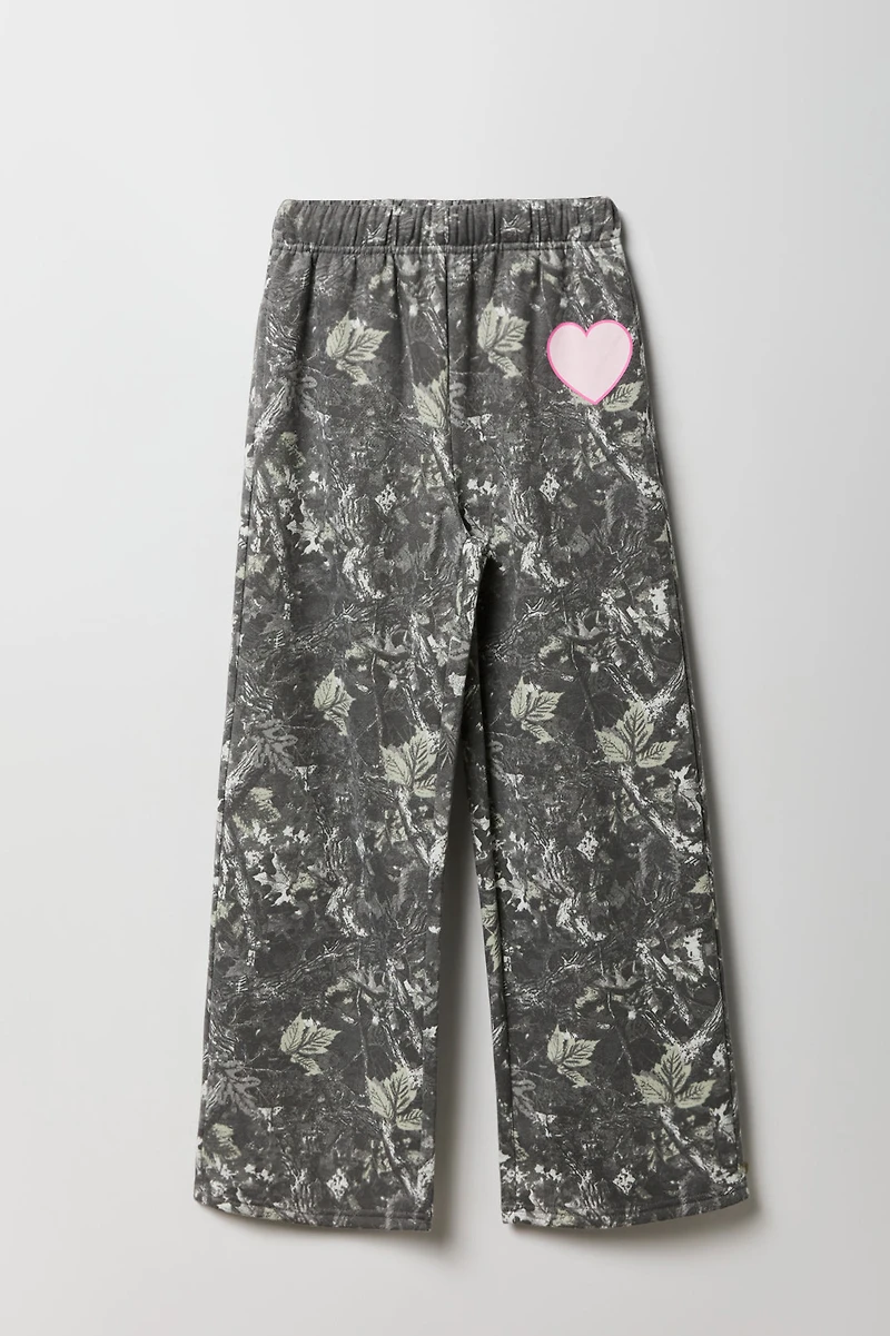 Pantalon d'entraînement à jambe large en molleton imprimé pour fille