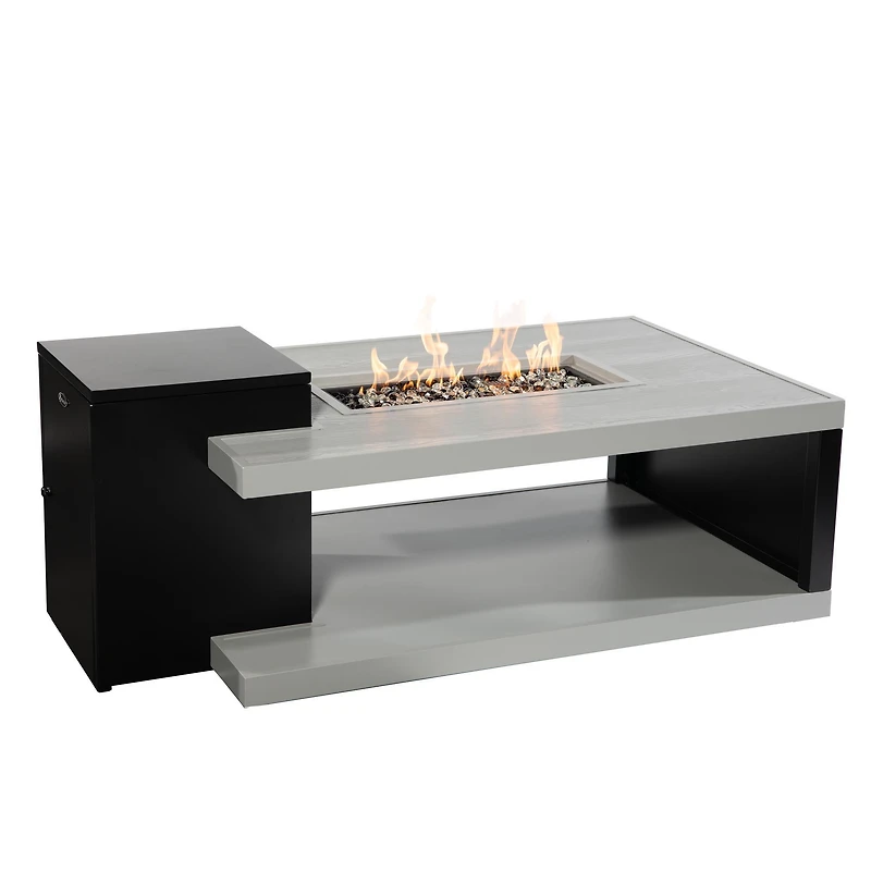 Enjoy cool spring or summer nights on the patio with up to 45,000 BTUs of heat from this aluminum convertible firetable from Paramount. Are you using propane? Hide your 20 lb propane tank in the side aluminum storage compartment, stylishly designed using