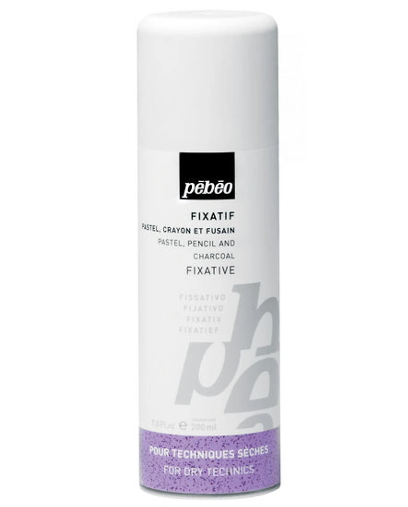 Pébéo pastel and charcoal fixative can be used to fix the powdery colour of the pastel or charcoal onto the paper without modifying the shade.