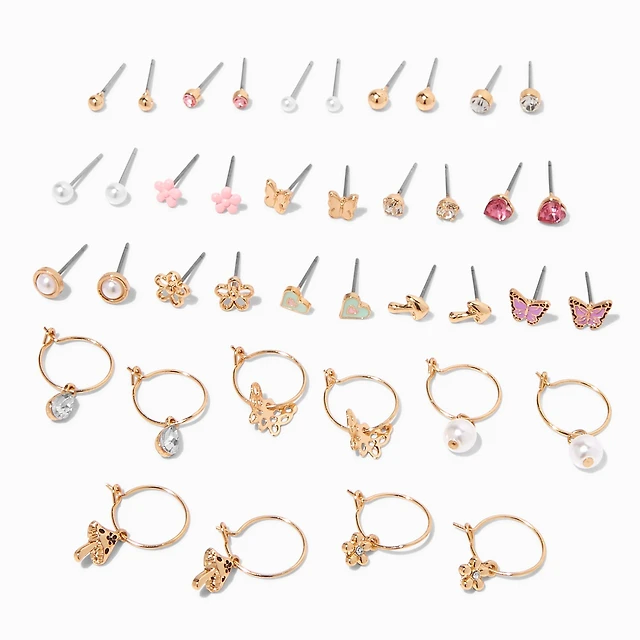 Pastel & Gold-tone Charm Earrings Set - 20 Pack