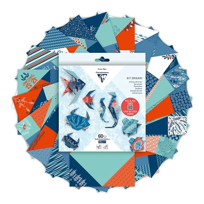 An assortment of 60 marine wildlife-themed patterned sheets for all your origami creations! Includes three different sizes in one pouch: twenty 10 x 10 cm sheets, twenty 15 x 15 cm sheets and twenty 20 x 20 cm sheets. Sheets feature a patterned front and a plain colour on the back.Weight: 70 g/m²