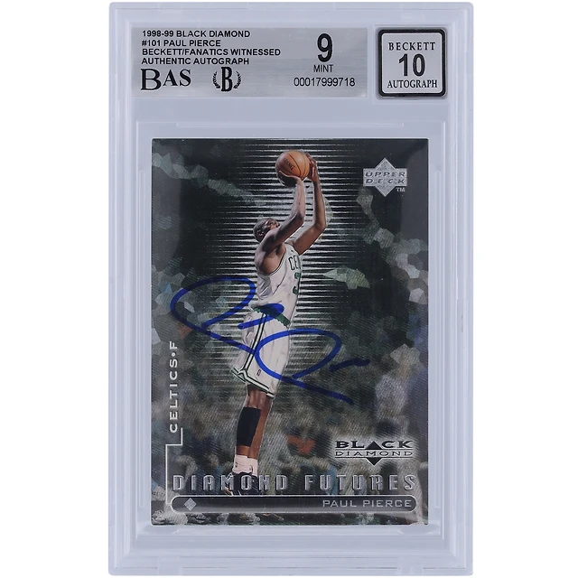 Paul Pierce Boston Celtics autographié 1998-99 Upper Deck Black Diamond #101 Beckett Fanatics Witnessed Authenticed 9/10 Rookie Card