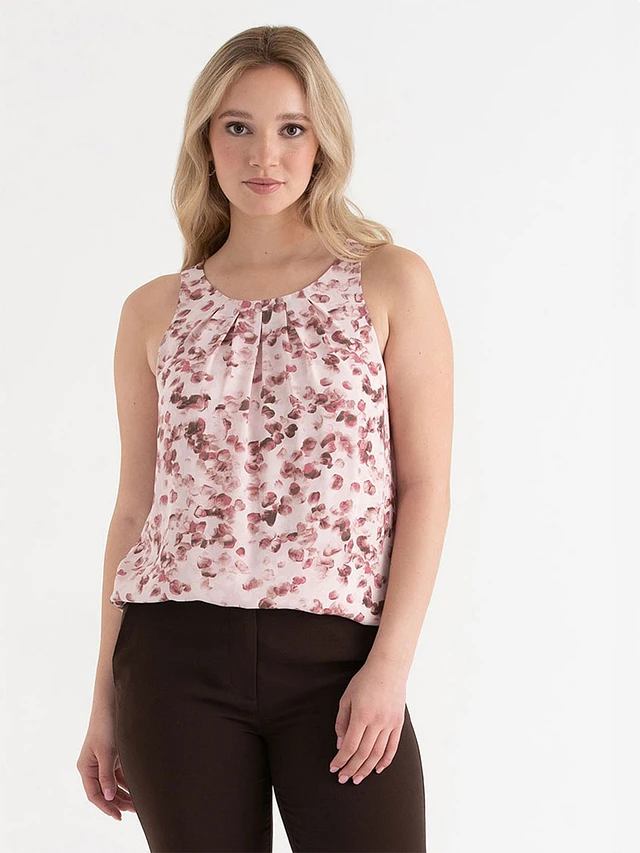 Romantic Paulina Pleat Neck Sleeveless Blouse