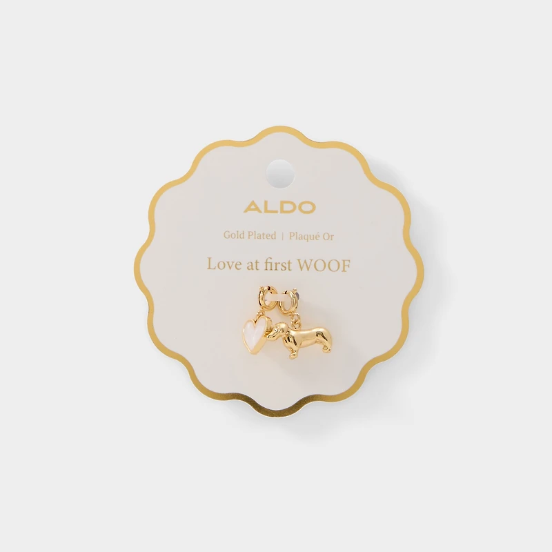 Heart- and dog-pendant charms gleam on slender gold-plated earrings, turning a simple pair into a playful focal point that catches light from every angle for day-to-night wear. Pair them with a blazer to frame a sharp office look, or lift a knit for coffee runs with playful sparkle.