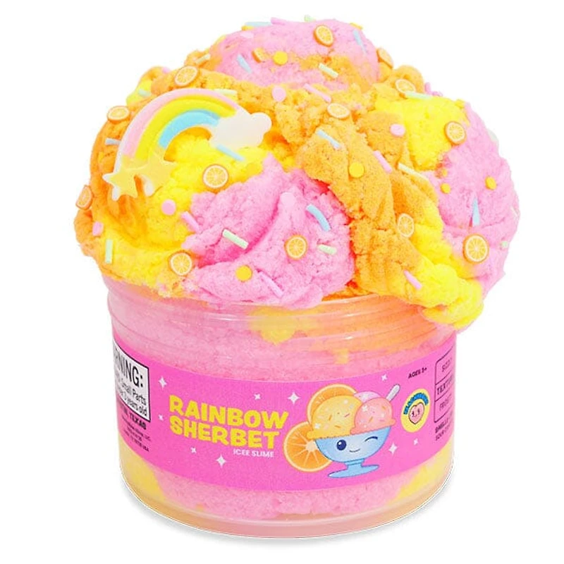 Infused with a delicious rainbow sherbet scent, every squeeze releases a burst of sweet, fruity goodness that feels like a mini treat for your senses. To top it off, this slime comes complete with charming add-ins including a rainbow charm, sherbet ice cream charm, and colorful sprinkle mix, letting you decorate and customize your slime for an extra pop of fun. Packaged in a 7oz jar, itâs the perfect size for collecting, gifting, or enjoying anytime you need a little colorful pick-me-up.