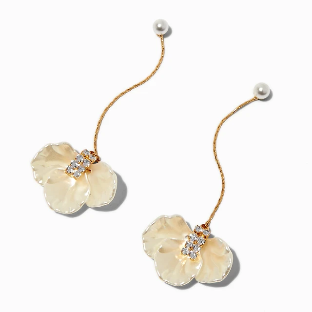 Pearl & Crystal Flower Gold-tone Drop Earrings