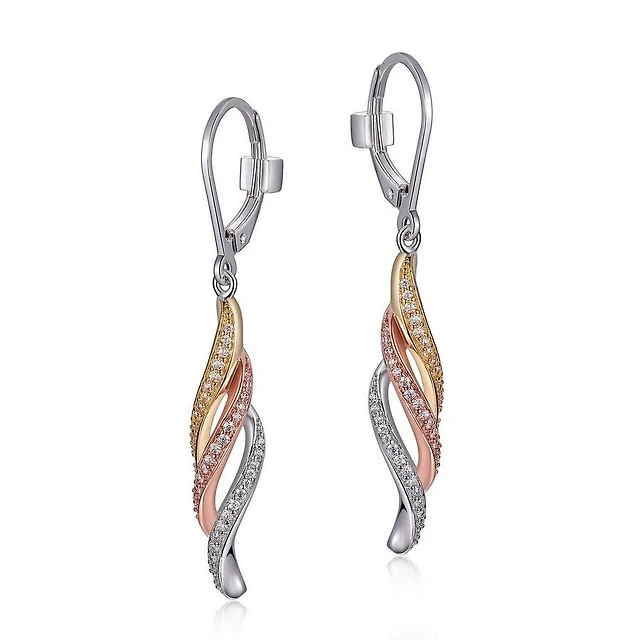 Pendants d'oreilles ELLE « Wave » en argent sterling et oxyde de zirconium cubique plaqué or 18 carats à 3 tons