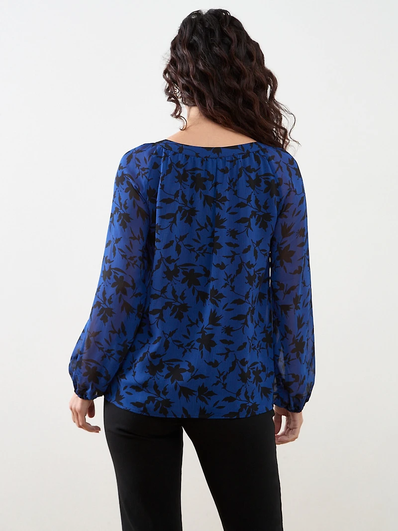 Petite Long Sleeved Round Neck Chiffon Blouse