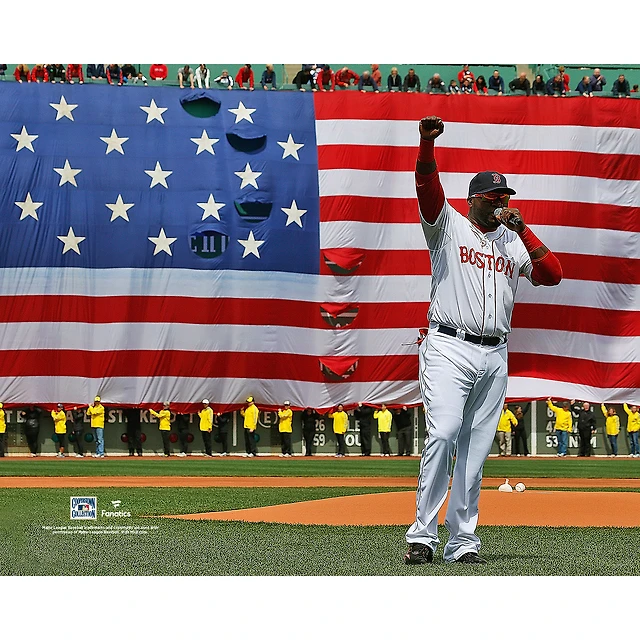 Photo non signée de David Ortiz des Boston Red Sox lors du discours 2013 « This Is Our City »