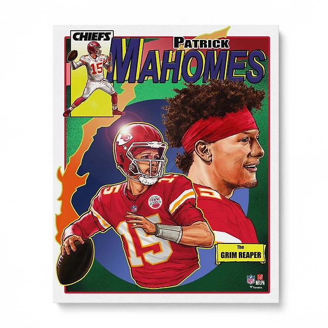 Photo non signée de Patrick Mahomes, Kansas City Chiefs, 16" x 20" - Art de Brian Kong