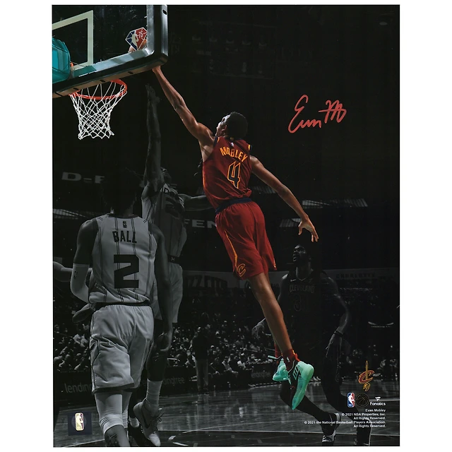 Photographie autographiée de 11'' x 14'' de Evan Mobley pour le match Dunk vs. Hornets